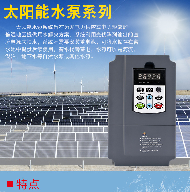 易用性好:只需將太陽能板接入變頻器,通電后即可實現(xiàn)交流水泵自動啟動