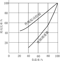2、傳統(tǒng)的起動(dòng)控制設(shè)備與采用變頻器耗電比率與負(fù)荷率的比較