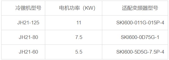 通過對冷鐓機應(yīng)用,在滿足工藝要求的同時,也提高了運行生產(chǎn)的效率,較以更為省時省力。而在沒有應(yīng)用變頻器之前,設(shè)備若直接起動的話,在啟動的瞬間會產(chǎn)生巨大的剪切力,很容易造成設(shè)備的損傷。使用變頻器以后設(shè)備故障率降低,同時,也減少設(shè)備的維護(hù)費用。更重要的一點是,因為設(shè)備工作在30-50Hz,還有很大的節(jié)能空間,因此,在冷鐓機可以大力推廣使用變頻。SKI600系列變頻器從問世以來,以其優(yōu)越的性能和穩(wěn)定可靠質(zhì)量,廣泛的應(yīng)用在各個領(lǐng)域,同時,在冷鐓機上也大量的應(yīng)用。